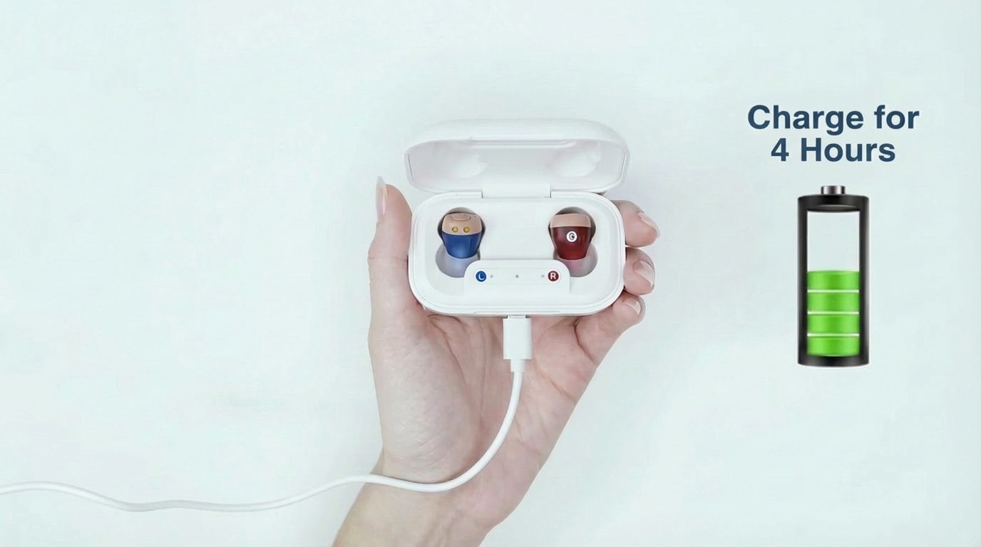 Long-lasting battery life - Wireless charging, just charge your hearing aids for 4 hours and you’ll be set to enjoy up to 24 hours of better hearing.